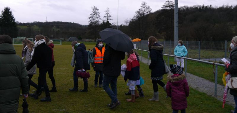 Viele Helfer*innen leiteten die Besucher Richtung Sportplatz.