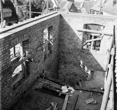 Beginn der Rohbauarbeiten des neuen Seitenflügels.