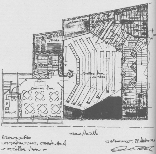 Vorentwurf von Architekt Erich Bolz zur Umgestaltung des Untergeschosses.