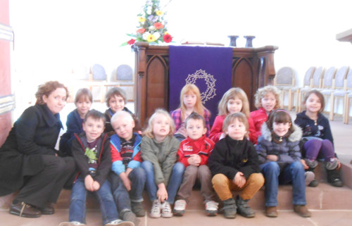 Die Kindergruppe vor dem Altar