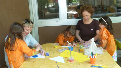 Die Kinder und Erzieherinnen