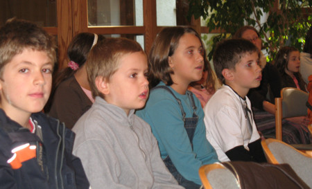 Samuel, Jonathan, Alissia und Stefan hörten interessiert zu.