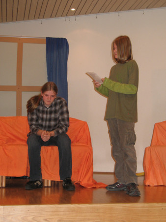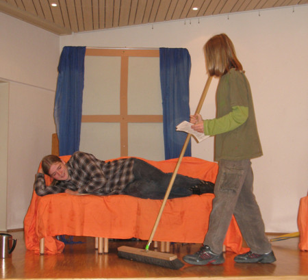 Zurück im Plenum - nach dem Gespräch über das Anspiel, malen und gemeinsam essen.