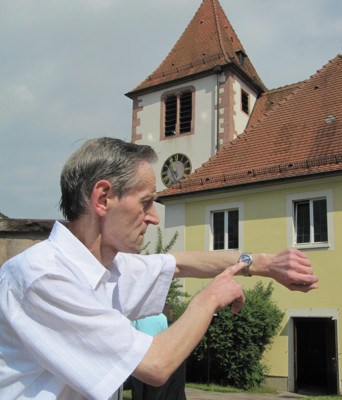 Über 42 Jahre lang die Kirchturmuhr in Dietlingen aufgezogen - Zum Abschied gab’s ein besonderes Erinnerungsstück. Eine besondere Ehre wurde dem Dietlinger Joachim Rau im Rahmen des Sonntagsgottesdienstes sowohl von der Kirchengemeinde, als auch der politischen Gemeinde zuteil. Genau 42 Jahre und zwei Monate hat der heute 61-jährige täglich die Kirchturmuhr, den "offiziellen Zeitgeber für die Einwohnerschaft" aufgezogen, bis er infolge eines Verkehrsunfalls, ab November vergangenen Jahres seinen Dienst nicht mehr versehen konnte. Mit einem Kostenaufwand von rund 12.000 Euro hat daraufhin die, für die Uhr zuständige politische Gemeinde den Uhrantrieb von mechanisch auf elektrisch umstellen lassen. Mit weiteren 3.000 Euro sollen nun im Rahmen der ab Oktober vorgesehenen grundlegenden Kirchensanierung auch noch Zeiger und Zifferblatt aufgefrischt werden.