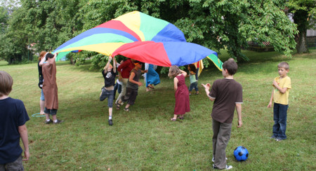 Gemeinsames Spielen und Spass im Pfarrgarten.