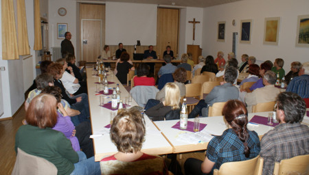 Claudia Kaufmann und Christoph Zastrow arbeiten als Sozialarbeiter beim Sozialpsychiatrischen Dienst der Diakonie im nördlichen Enzkreis. Sie berichteten von den Erfahrungen ihrer Arbeit mit psychisch Kranken. Ziel der Sozialdienste ist die kostenlose, flächendeckende Beratung und Unterstützung Betroffener und ihrer Angehörigen. Sie begleiten die Menschen und helfen, die Erfordernisse des Alltags zu bewältigen, bieten Gespräche an, wirken einer Vereinsamung entgegen, machen Mut zum Leben, entlasten die Angehörigen und ermöglichen ihnen den Austausch mit anderen Angehörigen. Ziel ihrer Bemühungen ist, dass die Betroffenen lernen, ein selbständiges Leben - mit Unterstützung - zu führen.