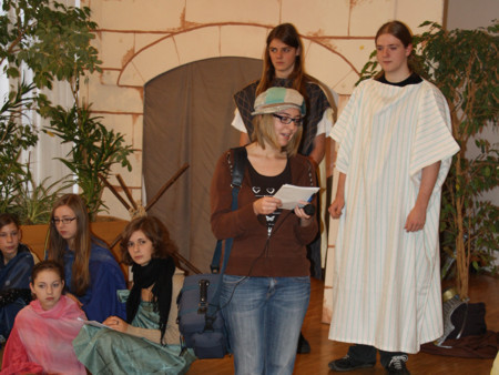 Die Kinder lernten mit der rasenden Reporterin "Vivien Wichtig - die Meisterin der klugen Fragen und der flinken Worte" - die Bedeutung des Vaterunser-Gebets kennen. Unter dem Motto der Kinderbibelwoche "hey, du, hör mir zu!" durften sie lernen, dass ein Gebet nichts Komisches oder Uncooles darstellt, sondern, dass wir uns vertrauensvoll mit unserem Leben an unseren Vater im Himmel wenden dürfen.