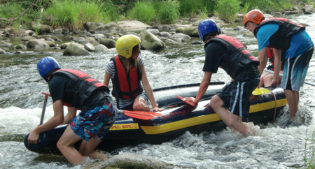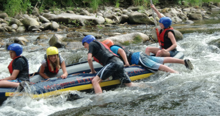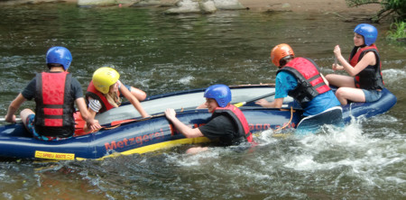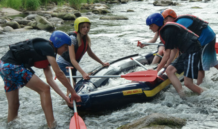 Sportlich ging es bei einer kleinen Rafting-Tour zu. Die Boote mussten aufgrund des niedrigen Wasserstands der Murg mehrfach getragen und aus den Felsen befreit werden. Schlussendlich waren alle nass, hatten aufgeschürfte Knie und waren dennoch zufrieden mit dem Nachmittag. Nach einer ultrakurzen Nacht starteten wir um 3.30 Uhr zur Sonnenaufgangstour. Ein strahlender Sonnenaufgang in der herrlichen Natur des Nordschwarzwaldes und eine weite Sicht - bis zum Odenwald, belohnte das frühe Aufstehen. Dabei staunten wir nicht nur über Gottes Schöpfung, sondern besprachen bei den Bibelarbeiten auch, wie wir Menschen zu Gott stehen und wie wir ihn kennen lernen können. Manche Diskussion brachte uns auf die Spur der Liebe Gottes zu den Menschen.
