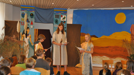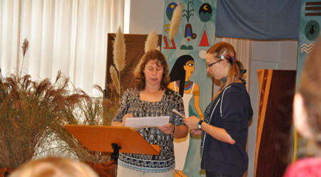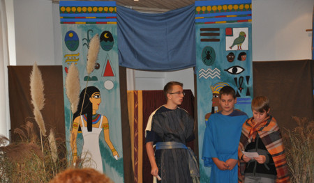In diesem Jahr ging es geheimnisvoll zu: Große ägyptische Gemälde versetzten die jungen Besucher in ein fernes Land. Dort hielt sie der geheimnisvolle Name, die geheimnisvolle Kraft oder die geheimnisvolle Quelle in Atem. Sie ließen sich ins Land der Pharaonen und Pyramiden entführen und entdeckten, wie Mose und sein Volk unerwartet Gottes Hilfe erlebten. Am brennenden Dornbusch erfuhr Mose, was der Name Gottes bedeutet: Ich bin für dich da. In der Kinder-Bibel-Woche und beim abschließenden Familiengottesdienst in der Andreaskirche wurde deutlich, dass Gott auch noch heute für uns da sein will. Herzlichen Dank an die vielen ehrenamtlichen Mitarbeiterinnen und Mitarbeiter, die auch in diesem Jahr wieder dazu beigetragen haben, dass die ökumenische Kinder-Bibel-Woche eine tolle und erlebnisreiche Veranstaltung für die Kinder wurde.
