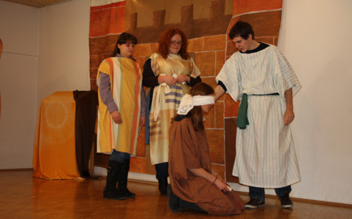 Beim Kinder-Bibel-Sonntag hörten wir die tolle Geschichte vom blinden Bartimäus aus Jericho, der eines Tages Jesus begegnete. Bartimäus hatte so sehr auf eine Heilung gehofft und durfte erleben, daß Jesus ihm tatsächlich helfen und Bartimäus wieder sehen konnte.