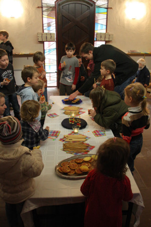 Seit Anfang März bewohnt unsere Fiffi wieder die wunderschön renovierte Andreaskirche. Während der lauten und schmutzigen Umbauphase flüchtete sie nach Italien zu ihrer Cousine Fiffinella, begrüßte uns aber gleich nach ihrer Rückkehr mit Bus und Bahn gebührend mit einem großen Mäusefest. Nach der ersten großen Wiedersehensfreude berichtete Fiffi, wie es ihr in Italien ergangen war. Dann durften wir bei einem spannenden Rundgang den Chorraum mit Altar und Glasfenstern, das Taufbecken, die Orgel und sogar den Glockenturm erkunden - und stellten fest, dass sich der anstrengende Umbau wirklich gelohnt hat. Den Höhepunkt des "Wieder daheim" - Gottesdienstes bildete aber das abschließende große Pizzaessen unter dem Glockenturm. Nach diesem großartigen Auftakt freuen sich Fiffi und ihre Helfer schon sehr auf ein Wiedersehen mit Euch.