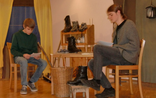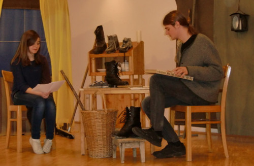 Am 1. Advent hatte das Kinder-Bibel-Sonntag-Team zu einem adventlichen Theaterstück eingeladen: Schuster Martin sitzt in seiner Werkstatt und merkt wie gut es ist, den Menschen gastfreundlich zu begegnen. Für ihn werden die Besuche von Hilfesuchenden zu einer Begegnung mit Gott. Mehr als zehn jugendliche Mitarbeiterinnen und Mitarbeiter brachten nicht nur das Stück auf die Bühne, sondern ließen auch mit Instrumentalbegleitung durch Geige, Gitarre, Querflöte, Cachon und Klavier die gemeinsam gesungenen Adventslieder festlich erklingen. Danach schmeckten Kinderpunsch und selbstgebackene Plätzchen besonders gut.