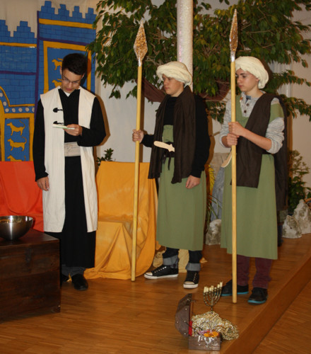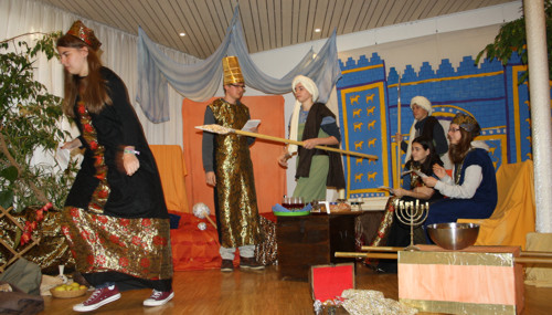 Ein großes Bild vom glanzvollen Ischtartor aus Babylon und orientalische Kostüme versetzten nahezu 60 Kinder und 30 Mitarbeitende, davon über 20 Jugendliche, in den Herbstferien wieder in eine abenteuerliche Stimmung. Gespannt verfolgten alle die Abenteuer von Daniel und seinen Freunden, die auf der Bühne im Oberlinhaus dargeboten wurden: Daniels Schwierigkeiten im fremden Land, die Einfälle der größenwahnsinnigen Könige und Daniels Vertrauen auf Gott, seinen löwenstarken Freund. Die Geschichte von "Daniel in der Löwengrube" stand beim Familiengottesdienst zum Abschluss der Kinderbibelwoche im Mittelpunkt.