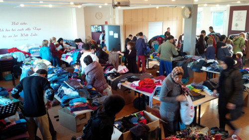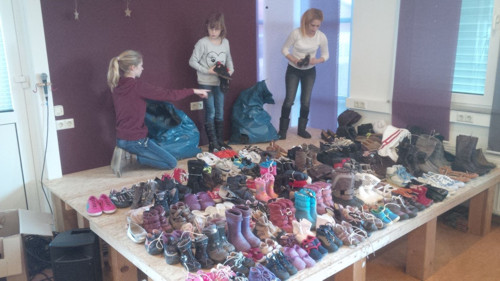 Am 05. und 19. Dezember 2015 fanden im Gemeindehaus der Freien Christlichen Gemeinde bei der Grenzsägmühle zwei Kleiderbazare des Arbeitskreises Flüchtlinge statt, bei denen sich die bei uns lebenden Flüchtlinge für einen geringen Eigenbeitrag mit warmer Winterkleidung ausstatten konnten. Viele fleißige Hände waren da, um die gespendeten Kleider und Schuhe zu sichten und zu sortieren. Dabei haben auch zwei der schon längere Zeit in Keltern lebenden Flüchtlingsfamilien kräftig mit angepackt.