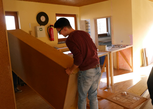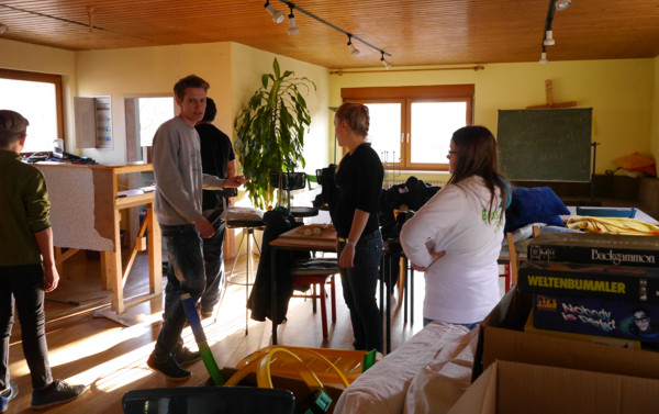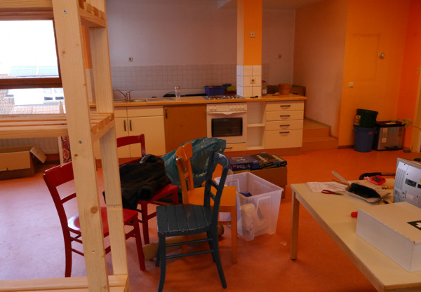 Nur vor wenigen Tagen (21.01.2017), / wurden Sofas getragen. / Tische und Stühle bewegt, / Räume sauber gefegt. / Speicher sortiert, Platten poliert, / Pflanzen wechseln den Raum. / Kisten verrückt, Regale bestückt. / Ach, das ist ein Traum. / Schränke gebaut, Spiele verstaut, / keiner stand nur so da. / Dann ein Gedicht, für den Bericht, / am Ende gab es Pizza.