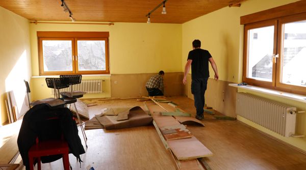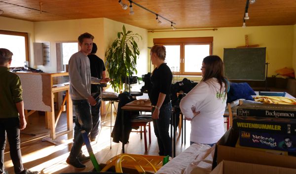 Am 21. Januar wurde kräftig angepackt und alles Mobiliar der Jugendräume im Obergeschoß umgezogen in die ehemaligen Kindergartenräume. Auch die Konfirmanden halfen im Rahmen ihres Konfi-Samstages mit und konnten so schon die Räume kennenlernen, in denen sie sich seitdem zum wöchentlichen Unterricht treffen. Nach getaner Arbeit und einem gemeinsamen Mittagessen entstand in gemütlicher Runde noch ein Gedicht, das die Ereignisse des Tages auf den Punkt bringt: