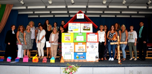 Komm, bau ein Haus, das uns beschützt! Unter Mitwirkung aller Farbkleckse feierten wir am 1. Juli einen Familiengottesdienst zur Einweihung der neuen Kindertagesstätte Farbklecks hier in Dietlingen. Die Schulanfänger bauten im Gottesdienst aus vielen Steinen ein großes Haus: Ihren Farbklecks. Die Steine standen für all die vielen Menschen, die geholfen hatten, um den neuen Kindergarten zu bauen: Der Architekt, die Gemeinde Keltern, die Evangelische Kirchengemeinde, die Handwerker, die Haushaltskräfte, der Bauhof, die Kinder, die Eltern und Familien, die Erzieher und Erzieherinnen, die Schule und die Nachbarn. Jeder hat seinen Teil dazu beigetragen, dass der neue FarbKlecks in Dietlingen gebaut werden konnte.