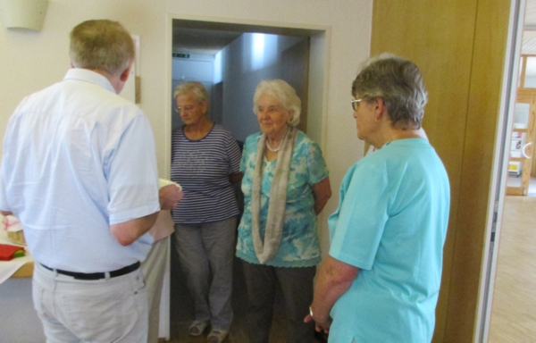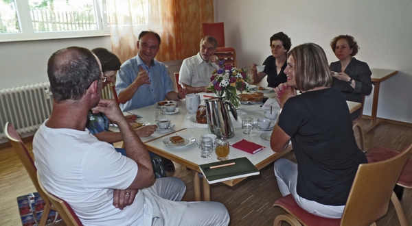 Im Oberlinhaus wurde die Kommission herzlich empfangen mit einem leckeren Imbiss. Im gemeinsamen Gespräch erzählte das Team von der Seniorenarbeit der Kirchengemeinde. Was den Senioren Freude macht, welche Themen besonders interessieren und gut ankommen. Es war zu spüren, mit wieviel Freude das Team den Seniorennachmittag gestaltet. Offene Ohren fanden aber auch die Sorgen des Teams: Der für Senioren schwierige Zugang zum Gemeindehaus und die sinkende Teilnehmerzahl beim Seniorennachmittag. Nach dem Gespräch schaute die Kommission das Oberlinhaus an.
