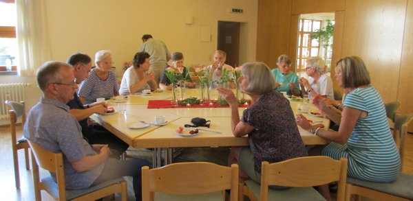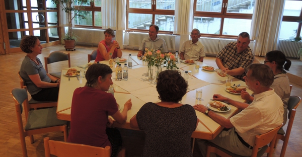 Zum Mittagessen waren wir am Donnerstag im Naturfreundehaus. Dort hat Waltraud Kies, unterstützt von Mitarbeitenden des Besuchsdienstkreises, für uns gekocht. Beim Essen erzählten die Mitarbeitenden von den wertvollen Begegnungen mit Menschen, die bei vielen Besuchen entstehen. Am Nachmittag besprach sich die Kommission und führte ein Gespräch mit Pfarrerin Lieb.