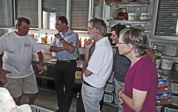 Seniorchef Walter Augenstein (links) mit der Visitationskommission in der Backstube.