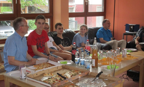 Am Freitagabend war die Kommission in den Jugendkreis eingeladen. Die Jugendlichen zeigten einen Film über die Kinderbibelwoche im vergangenen Jahr. Dann erzählten sie, wer sie sind und was sie bei uns in der Gemeinde machen: Den KiBiSo, die KiBiWo, den Jugendkreis. Auf die Frage der Kommission, was sie sich wünschen würden für die Jugendarbeit, antworteten die Jugendlichen mit einer ganzen Reihe Ideen für die Gestaltung der Jugendräume.
