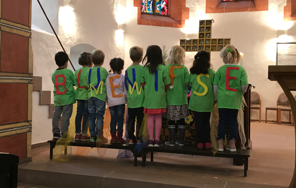 Schon lange wollten die Kinder und Erzieherinnen des Evangelischen Kindergartens in der Uhlandstraße 4, dem Kindergarten einen Namen geben. Im Familien-Gottesdienst am 16. September 2017 war es dann soweit. "Ich habe dich bei deinem Namen gerufen", so lautete das Thema des Gottesdienstes, in dem der Kindergarten in "Evangelischer Kindergarten Blumenwiese" umbenannt wurde.