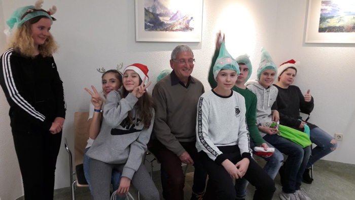Pfarrer i. R. Reinhard Wettach und die Konfirmanden im Krankenhaus.