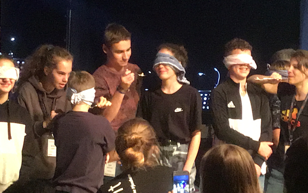 An diesem Abend haben wir sozusagen Teamspiele in der Halle gemacht. Es war sehr lustig und so hat es angefangen. Als erster hat Luis sich bereit erklärt beim Schokokusswettessen mitzumachen. Er wurde Zweiter! Danach mussten wir Dietlinger Konfis Filme anhand ihrer Melodien erraten. Dann kam schon Nele: Sie musste Sachen mit verbundenen Augen probieren und erraten. Sie hat es als Feinschmeckerin wirklich rausgerissen. Anschließend kam Simon und musste eine volle Sprudelflasche heben im 90 Grad Winkel. Das war nichts für schwache Nerven. Am Ende haben wir uns den Sieg geholt dank unserer tollen Kandidaten und Nele, der Feinschmeckerin.