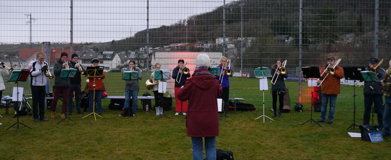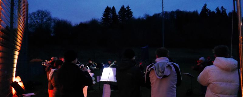 Posaunenklänge klingen in die Dunkelheit.