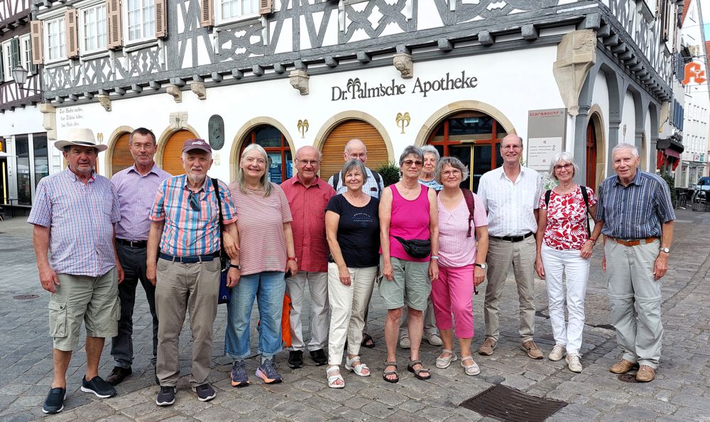 "Wenn Engel reisen, dann lacht der Himmel", sagt das Sprichwort. Demnach müssen die Sängerinnen und Sänger samt Angehörige des Singkreises Engel sein. Denn beim Chorausflug im 70. Jubiläumsjahr nach Schorndorf lachte der Himmel spätsommerlich freundlich. Viel Wissenswertes über die malerische Fachwerkstadt und die Taufkirche von Gottlieb Daimler und unserem ersten Ministerpräsidenten Reinhold Maier sowie eine kleine Gesangsprobe bei historisch-sakraler Akustik machten den Tag zu einem unvergesslichen Erlebnis.