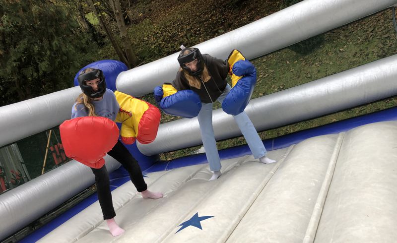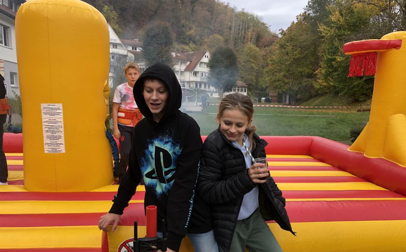 Nachmittag fand draußen ein Festival statt. Dieser Tag hat uns alle sehr begeistert. Die Angebote waren vielseitig und haben viel Spaß gemacht. Besonders toll fand ich die Basketball-Hüpfburg und die restlichen Aktivitäten draußen. Die Drehkugel war ein besonderes Highlight, aber nicht für jeden geeignet. Auch drinnen gab es tolle Angebote. Das Hennamalen war sehr kreativ und eine tolle Idee. Die Teamer haben sich super viel Mühe gegeben und waren total nett. Insgesamt war der Tag superschön und spaßig.
