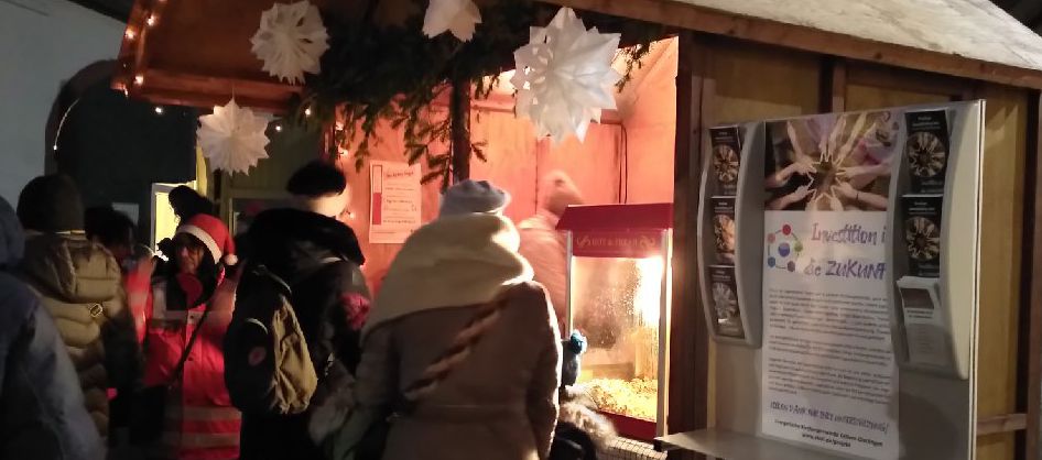 Am 3. Dezember beteiligten wir uns mit einem Infostand am Dietlinger Nikolausmarkt. Der Duft von frischem Popcorn und leckerem Punsch lockte viele Besucher*innen des Marktes zu unserer Hütte.