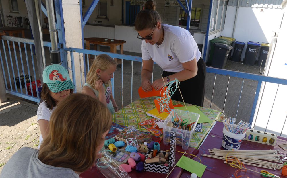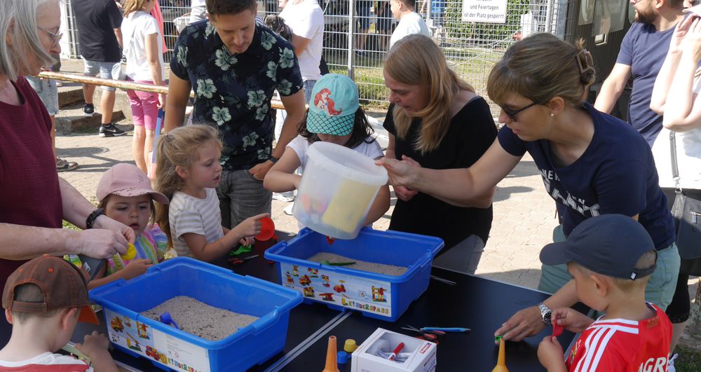 Unter dem Motto Im Team mit Gott feierten wir Gottesdienst beim FCD im Rahmen des Cage-Cups. Fiffi, unsere Kirchenmaus, Agur Schatz, der große Zeitreisende des KiBiSo, und das Fiffi- sowie das KiBiSo-Team spielten zusammen mit dem Posaunenchor in Gottes großem Team. Ein Team, in dem jede und jeder willkommen ist, genauso wie er ist. Während der Predigt konnten alle Kinder auf dem Sportplatz spielen, basteln und Aktionen mit Fiffi und Agur machen.